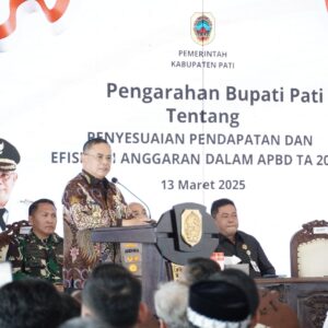 Pati, 13 Maret 2025 – Bertempat di Pendopo Kabupaten Pati, Bupati Pati, Sudewo, memberikan pengarahan tentang penyesuaian pendapatan dan efisiensi belanja daerah